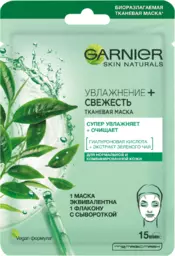 Маска тканевая для лица Garnier Увлажнение + Свежесть с гиалуроновой, П-анисовой кислотами, экстрактом чайного листа, для нормальной и комбинированной кожи, 42г