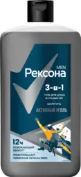 Гель для душа, умывания и шампунь мужской Рексона Men Активный уголь 3в1, 750мл