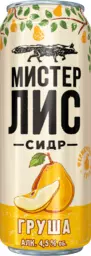 Сидр игристый Мистер Лис Сочная Груша пастеризованный газированный полусладкий 4.5%, 0.43л