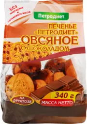 Печенье овсяное Здоровые Сладости Петродиет с шоколадом, на фруктозе, 340г