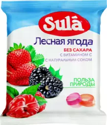 Карамель леденцовая Sula Лесная ягода со вкусом малины, клубники и ежевики, без сахара,60г