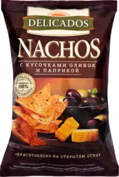 Чипсы кукурузные Delicados Nachos с кусочками оливок и паприкой, 150г