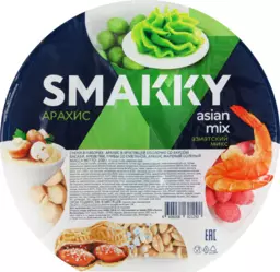 Арахис Smakky Asian mix снековая тарелка, со вкусом васаби, креветки, грибов со сметаной, жареный соленый, 200г