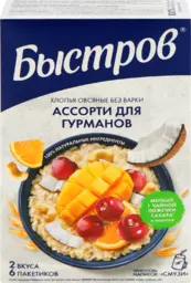 Каша овсяная Быстров Ассорти для гурманов, Вишня, кешью, кокос и Манго, апельсин, 6х38г