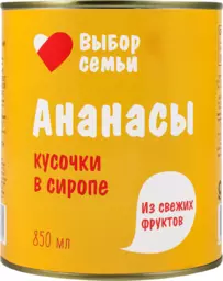 Ананасы Выбор Семьи кусочки в сиропе, 830г