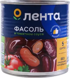 Фасоль Лента 5 сортов, в томатном соусе, 400г