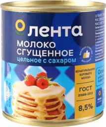 Молоко сгущенное Лента цельное с сахаром 8.5% без змж, 380г