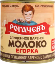 Молоко сгущенное Рогачевъ Егорка, цельное с сахаром вареное 8.5%, без змж, 360г