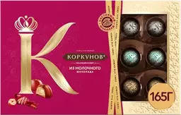 Коллекция шоколадных конфет Коркунов из молочного шоколада с фундуком карамелизированным грецким орехом и вафельной крошкой 165г