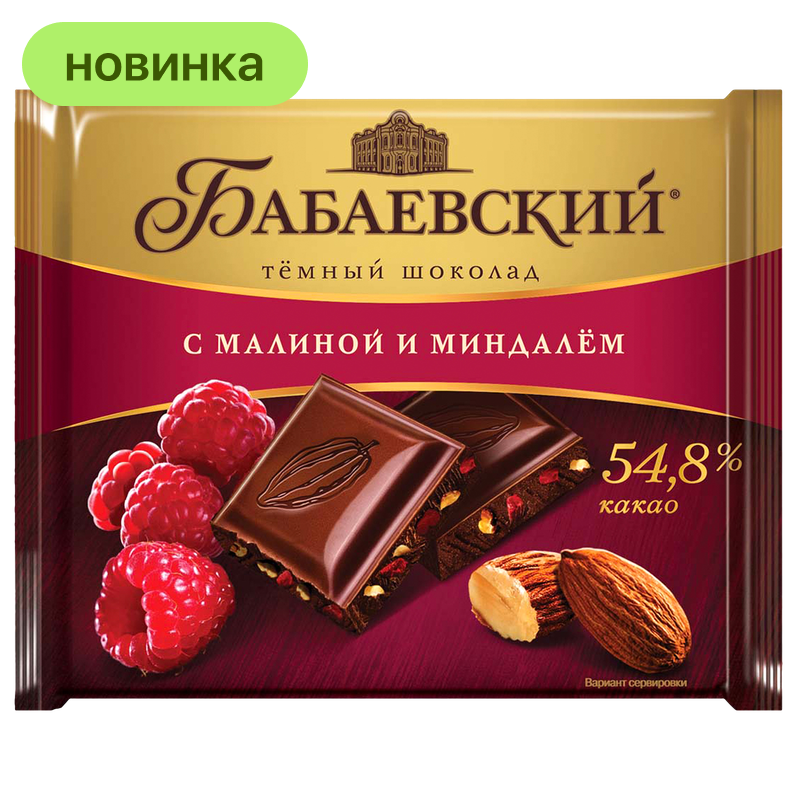 Шоколад Бабаевский тёмный с малиной и миндалем, 70 г