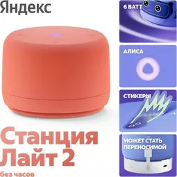 Умная колонка Яндекс Станция Лайт 2 с Алисой, без часов, 6 Вт, корраловый
