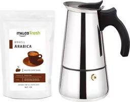 Гейзерная кофеварка Italco Torino 6 порц., кофе Iitalco Arabica Brazil 90г