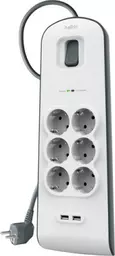 Сетевой фильтр Belkin 6 розеток/2xusb, макс 650Дж 2м White (Bsv604vf2m)