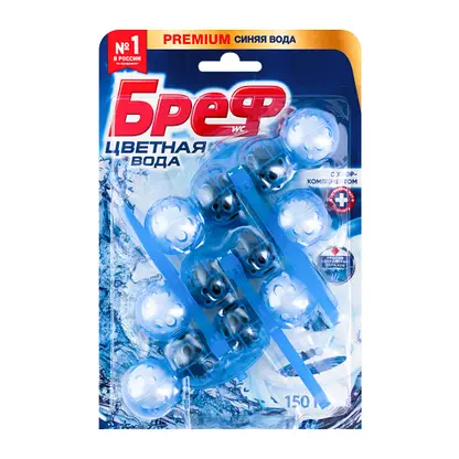 Туалетный блок Бреф Цветная вода с хлор-компонентом шарики для унитаза 3шт*50г