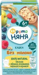 Кашка овсяная Фрутоняня безмолочная с яблоком, земляникой, малиной и черникой, с 6 месяцев, 200мл