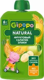 Пюре фруктово-злаковое Gipopo Фруктовый салатик и злаки, яблоко, груша, банан и злаки, с 6 месяцев, 90г
