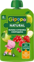 Пюре фруктово-ягодное Gipopo Яблоко, клубника и красная смородина, с 6 месяцев, 90г