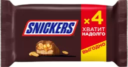 Батончик шоколадный Snickers с жареным арахисом, карамелью и нугой, 4х40г