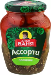 Ассорти маринованное Дядя Ваня огурцы и томаты, 680г