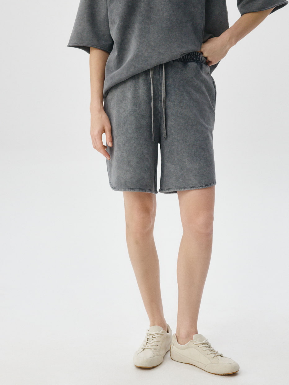 Шорты из футера с эффектом кислотной стиркой 5806011593_58