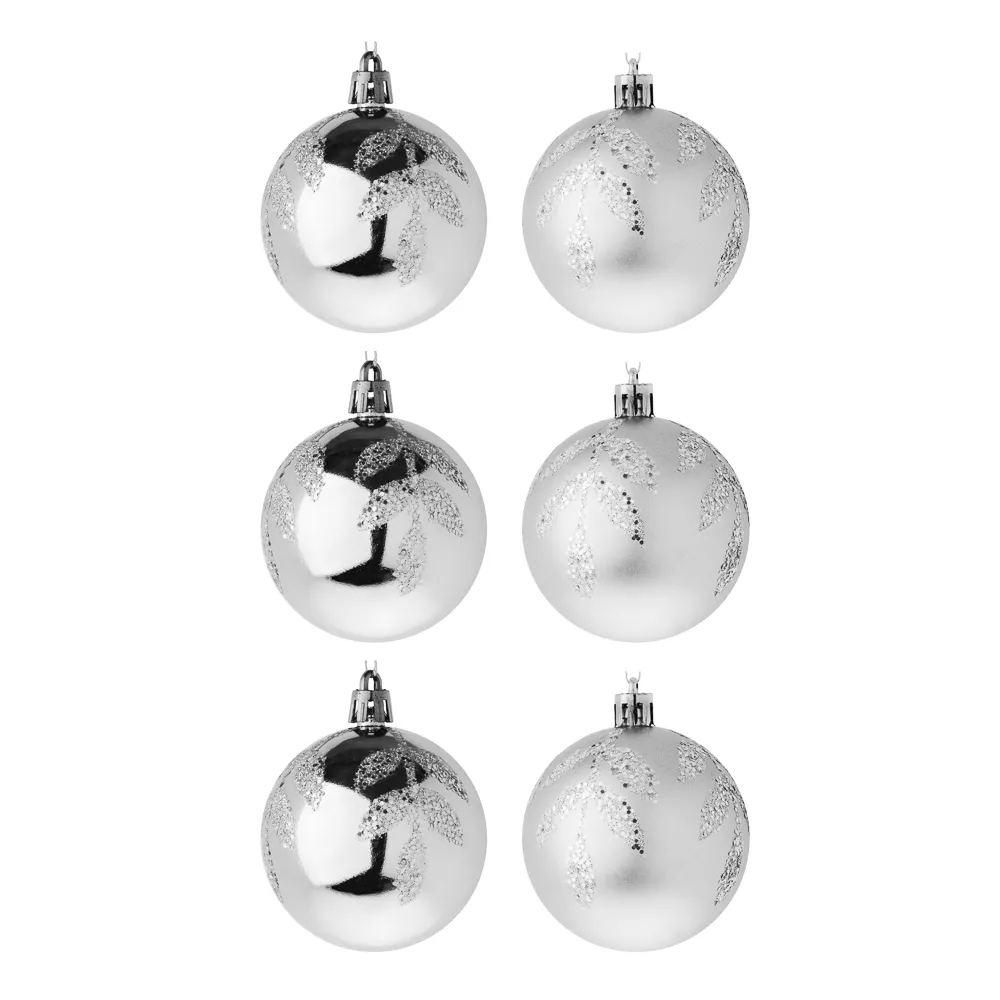 Сноу Бум Набор шаров 6 см, 6 шт, серебро, пластик, глиттер, 26-132