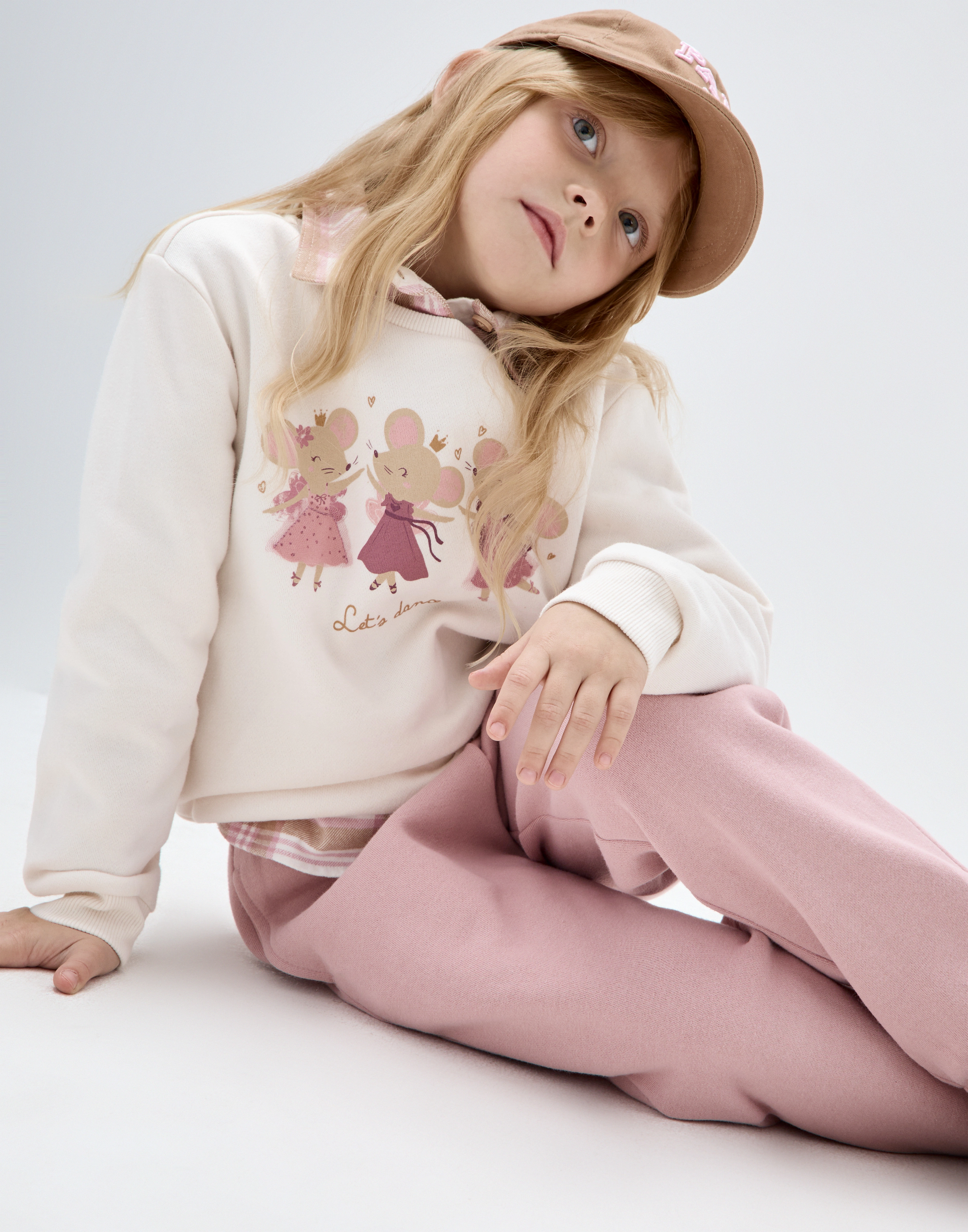 Молочный свитшот оверсайз с принтом для девочки Gac024832-1