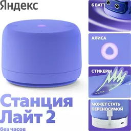 Умная колонка Яндекс Станция Лайт 2 с Алисой, без часов, 6 Вт, фиолетовая