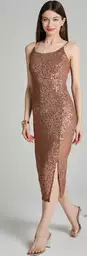 Платье вечернее с пайетками миди на бретелях с разрезом 57464