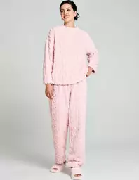 Новогодняя теплая плюшевая пижама с косами и брюками 52805