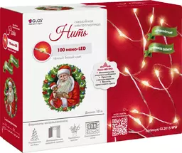 Электрогирлянда нить Glos 100 нано-led теплый белый, 10м
