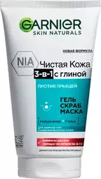 Гель + Скраб + Маска Garnier Чистая кожа 3в1 с глиной цинком и салициловой кислотой против прыщей и черных точек для жирной и комбинированной кожи 150мл