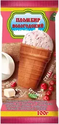 Мороженое Вологодский пломбир Пломбир с кусочками ягод Брусника и Клюква в вафельном стаканчике 100г