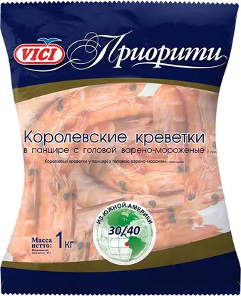 Королевские креветки Vici в панцире варено-мороженые 1кг