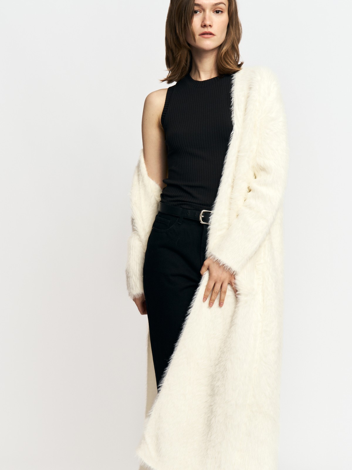 Длинный меховой кардиган без застёжки