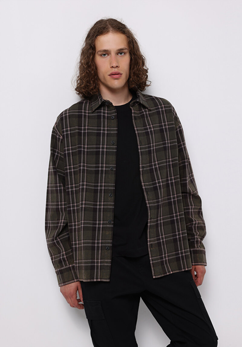 Мужские Зеленый Рубашки Длинный Рукав Рубашка Шеи Клетка Хлопок Пуговицы Comfort Fit 47142