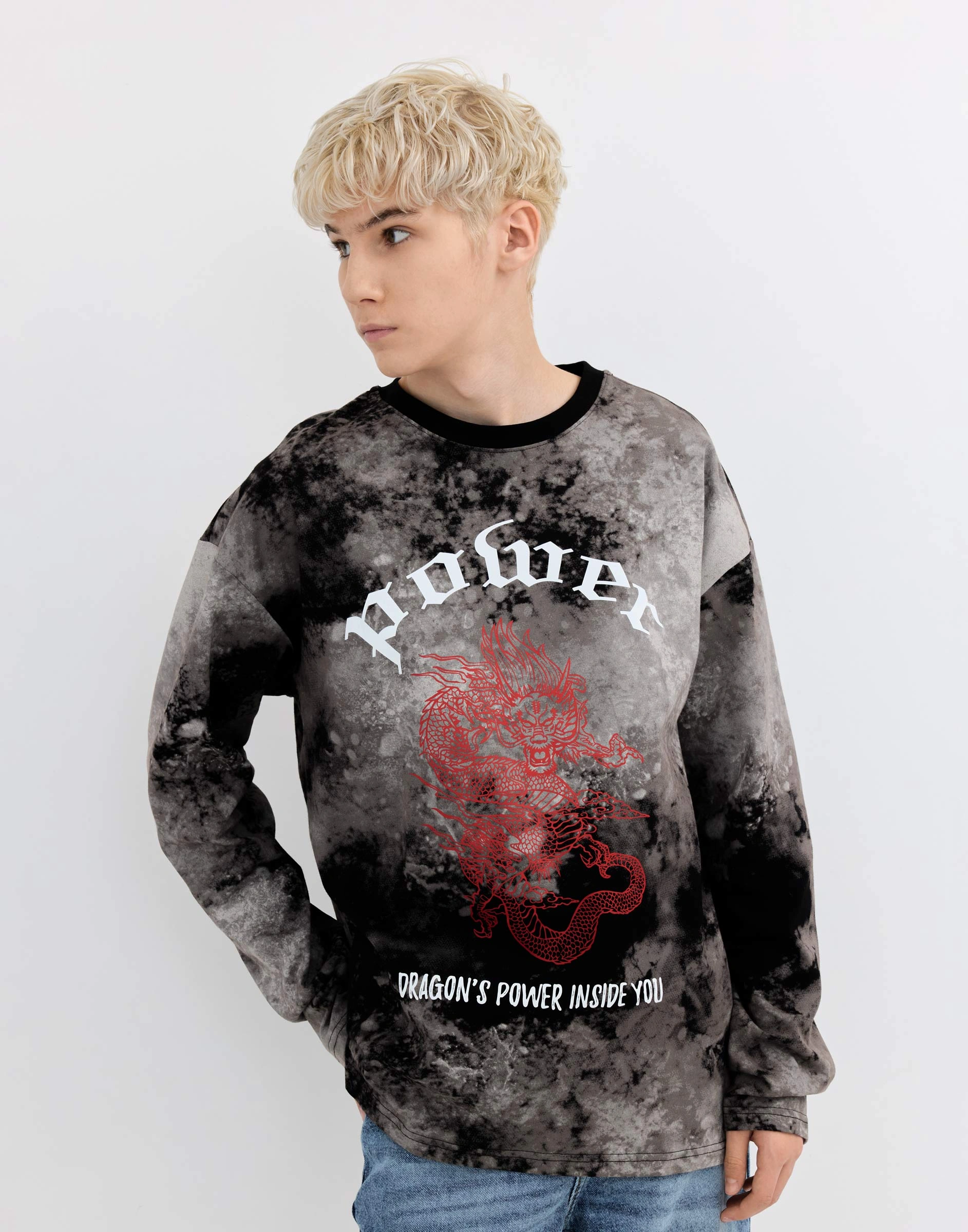 Лонгслив Оверсайз с принтом и дырами Bkt015831-2