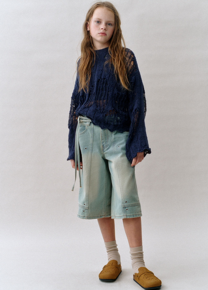 Джинсовые удлиненные шорты с люверсами для девочек 5804051455_101