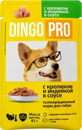 Корм влажный Dingo Pro с кроликом и индейкой в соусе для собак консервированный полнорационный 85г