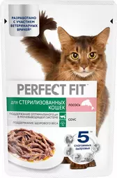 Корм влажный Perfect Fit Лосось в соусе для стерилизованных котов и кошек 75г