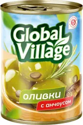 Оливки Global Village зеленые фаршированные анчоусом 200г