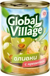 Оливки Global Village зеленые фаршированные креветкой 200г