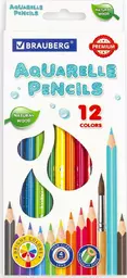 Карандаши цветные Brauberg Premium Aquarelle, 12 цветов, натуральное дерево (181671)