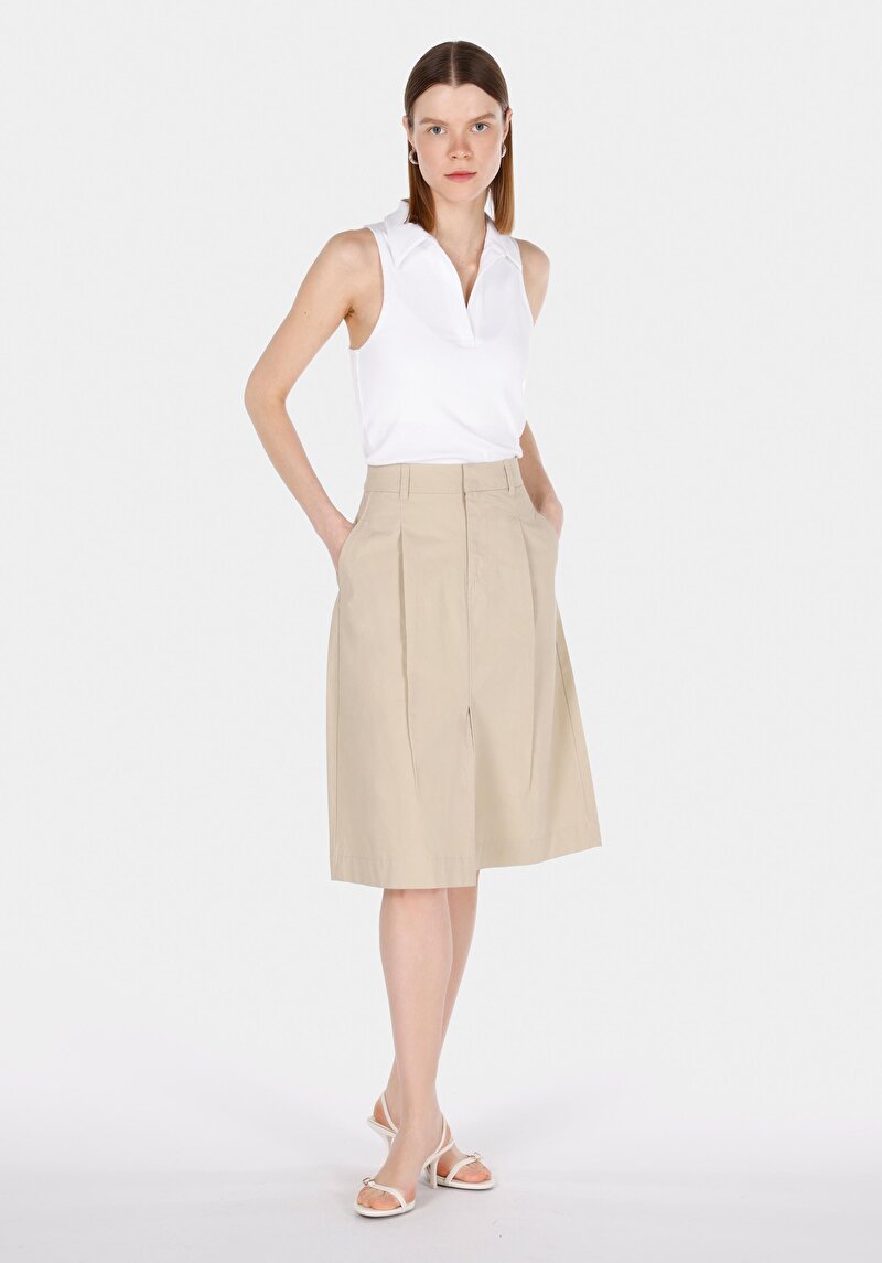 Женская бежевая миди-юбка прямого кроя на молнии 45016