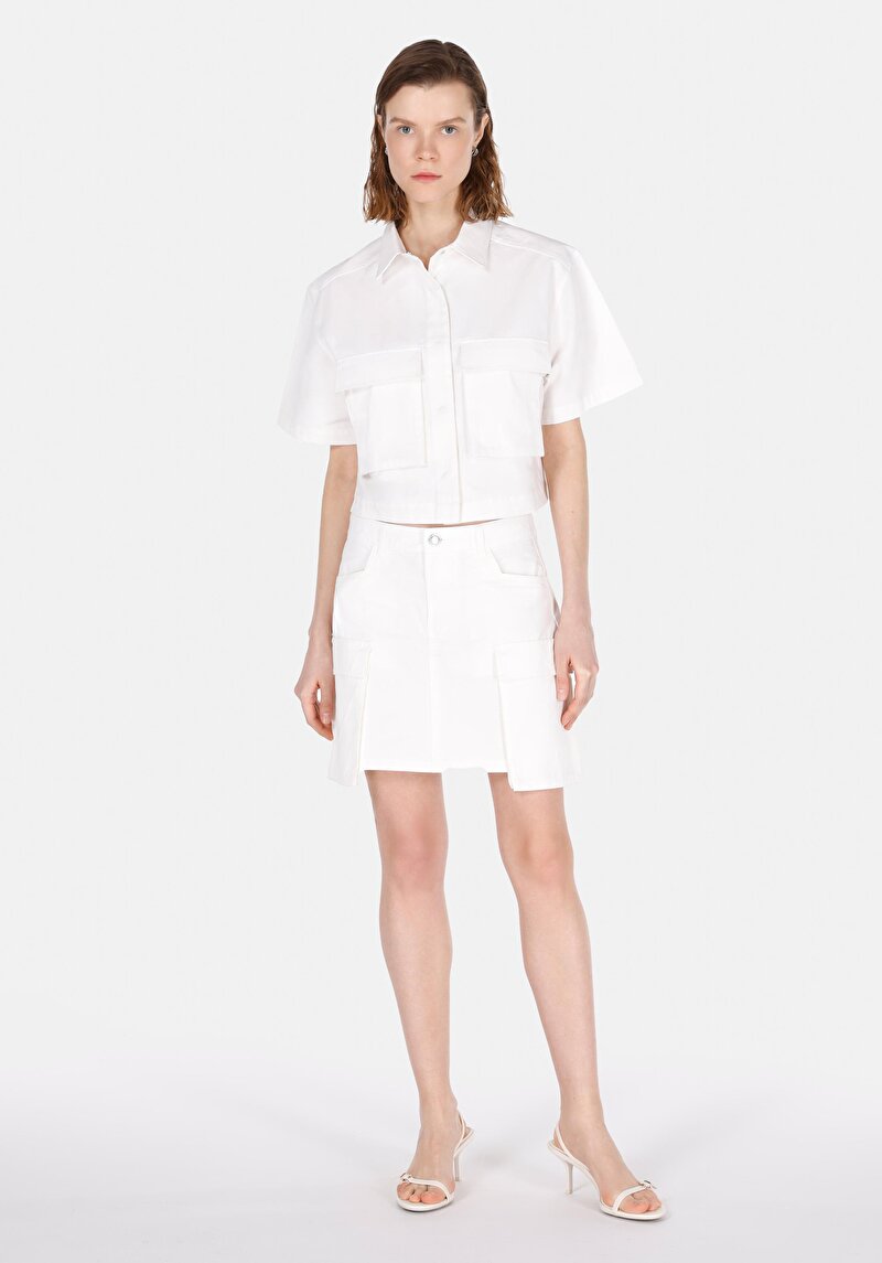 Женская белая мини-юбка прямого кроя на молнии 46763