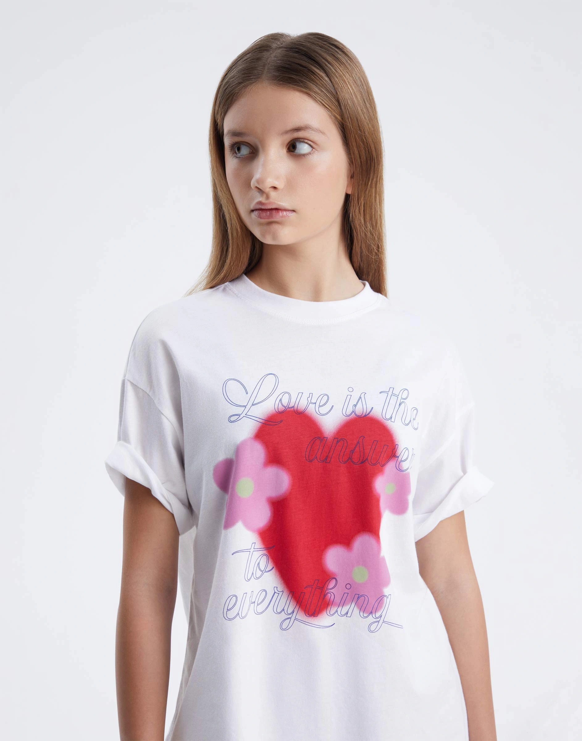 Белая ночная сорочка оверсайз с принтом Gsl002530-1