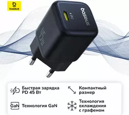 Сетевое зарядное устройство Baseus Picogo Gan Fast Charger 1C 45W Eu Cosmic Black (P10176800123-00)