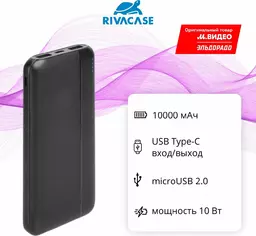 Внешний аккумулятор Rivacase Va2031 10000mah Black