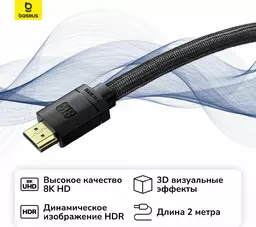 Кабель Baseus Hdmi 8K/hdmi 8K Adapter Cable 2m Black