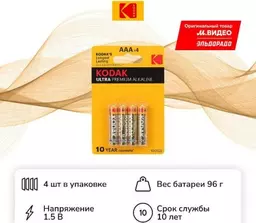 Батарея Kodak Lr03-4bl Ultra Premium [ K3a-4 U] (30959521)