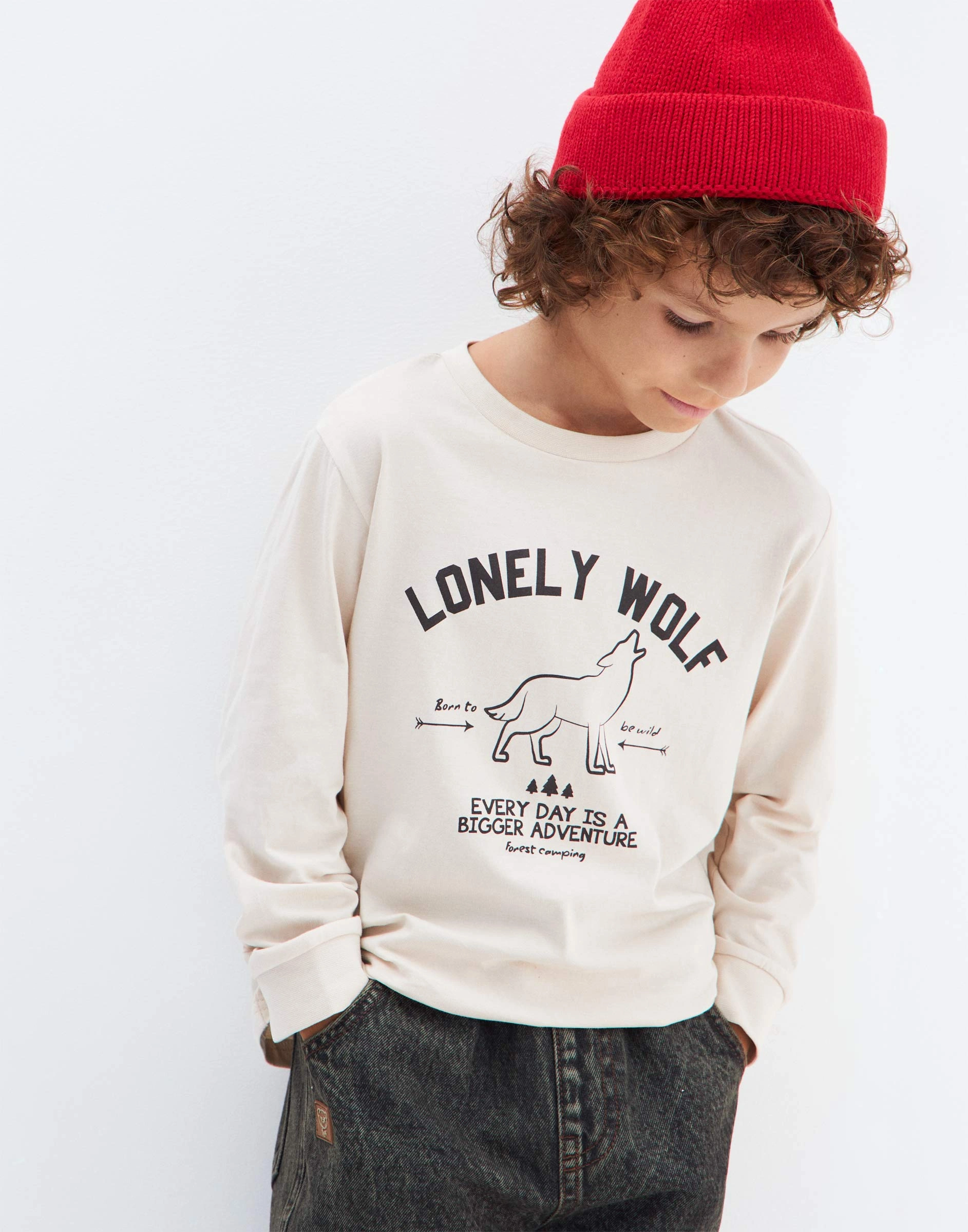 Бежевый лонгслив с принтом для мальчика Bkt017165-1